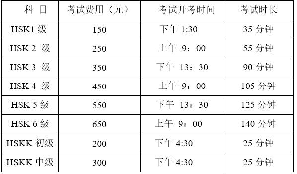 考试按等级分上午和下午两个时间段进行,各位考生请根据自己的情况选择考试等级,具体时间及收费标准见下表: