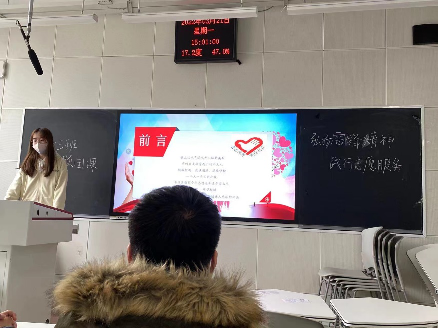 ISEC会计3班团支部在第三教学楼举办“弘扬雷锋精神,践行志愿服务”主题团日活动,辅导员张金哲、班主任赵玥和全体学生参加。