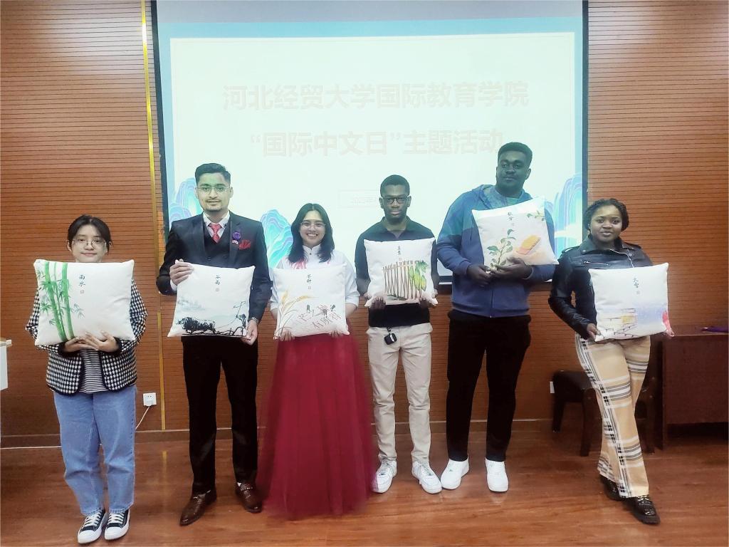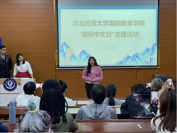 活动通过诗词诵读、文化竞猜、音乐展演等沉浸式体验,展现中文跨越时空的文化传承,架起中外文明互鉴的桥梁。来自赤道几内亚、尼泊尔、赞比亚的留学生代表联袂登台,以中文歌曲串联起文化共鸣。在“诗词跨时空跟读”环节,通过电影《长安三万里》中李白《将进酒》的豪迈诵读片段,带领师生穿越盛唐气象。在“甲骨文限时竞猜”环节,留学生以五人小组形式展开角逐,在互动中溯源汉字演变。在“中国传统二十四节气排序”竞赛环节,留学生以智趣结合的方式,深化了对中国农耕文明的认知。