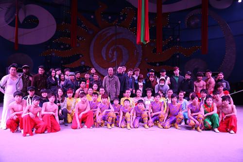留学生与杂技演员合影