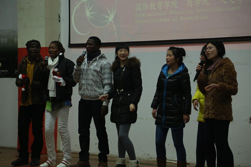 12月24日,我院协同商学院和人文学院在就业报告厅组织了“欢度圣诞 喜迎新年”——中外学子迎新年联欢会。商学院、人文学院、国际交流中心和我院的领导及中外学生近200人欢聚一堂,共同欢度圣诞,喜迎元旦佳节。