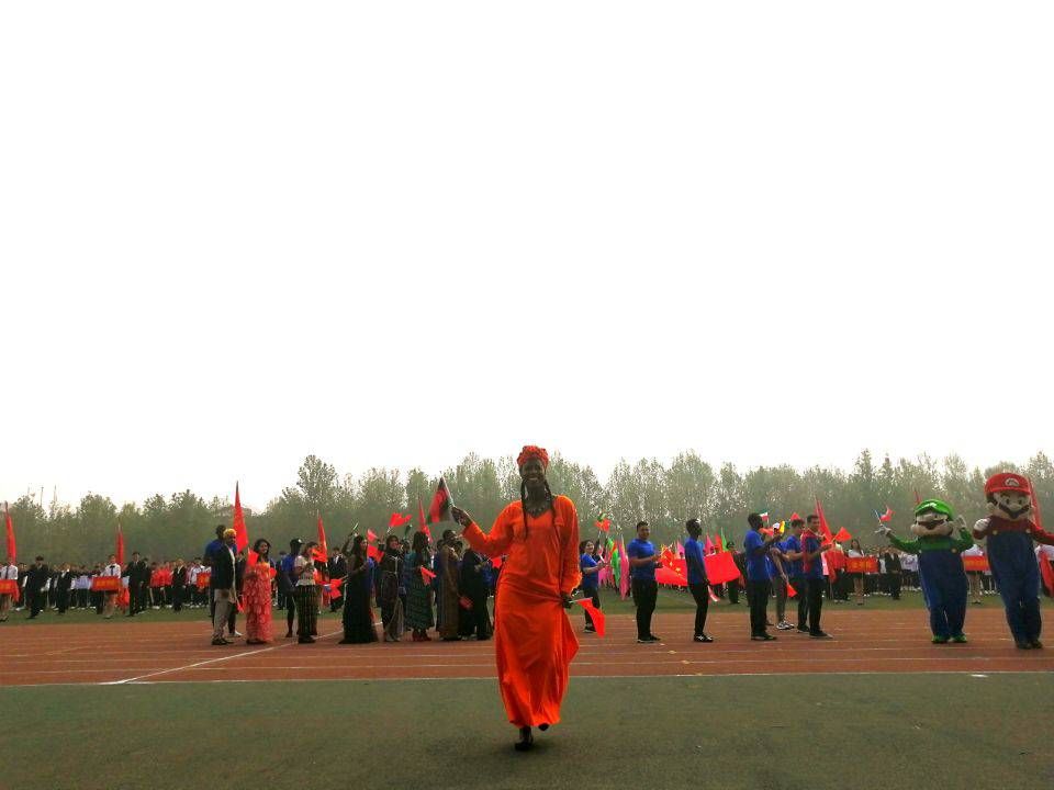 来自美国的李连杰同学和赤道几内亚的詹尼同学身着超级玛丽服装,充分展示了留学生的活泼可爱;各国留学生身着民族服装在主席台前互动,体现了独具特色的文化风采。