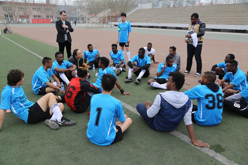 由各个学院足球精英组成的校足球队,一开场就率先杀入一球领先。留学生足球队迅速调整状态,进球追平。中场结束时,留学生足球队1比2落后。后半场校足球队队员体力开始下降,留学生队员逐渐状况了场上节奏,到主裁判的终场哨声响起时,留学生足球队以4:比3赢得比赛。