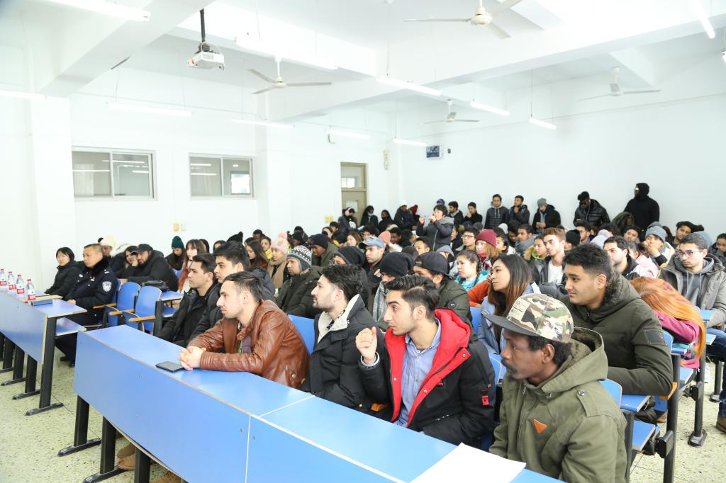 院领导、留学生工作管理教师及全体留学生参加本次活动。石家庄市新华区公安局出入境管理支队支队长柴越和五七路派出所民警高春萌应邀出席。