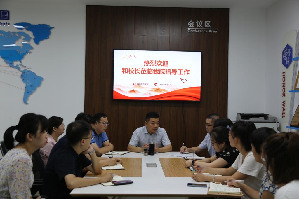 负责人详细介绍了ISEC项目、留学生管理、援外培训等工作的进展情况,并就学院下一步工作设想做了具体汇报。和志强对学院工作给予充分肯定,并就学院转型升级和未来发展事宜与教职工进行了深入交流。他强调:“天美传媒