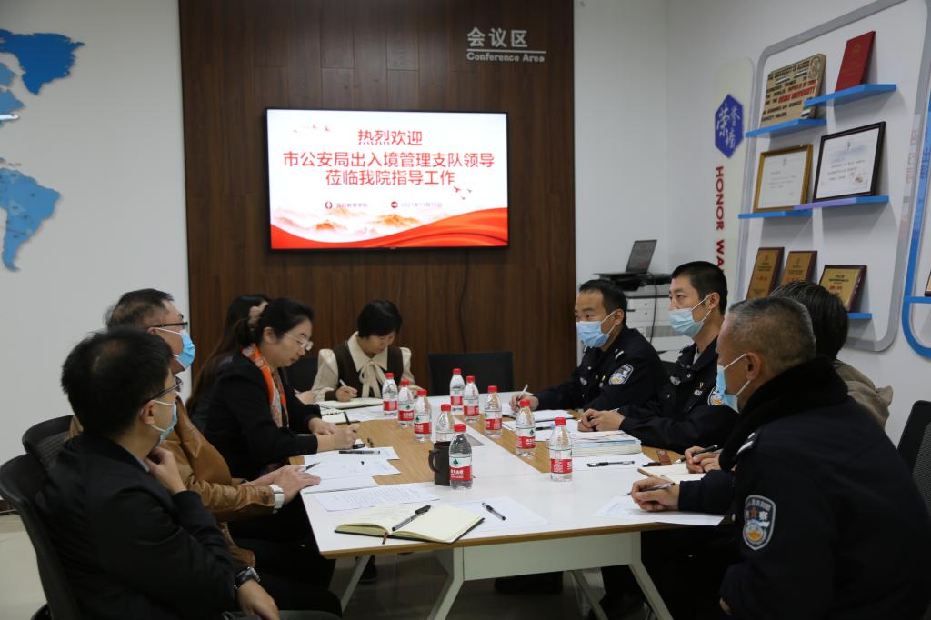 会上,刘晔代表学院对出入境管理支队警官莅临学校指导工作表示热烈欢迎和感谢。樊国平就留学生管理工作、尤其是近两年在疫情防控常态化下取得的成绩和面临的主要问题做详细汇报。市公安局出入境管理支队警官就外国人相关法律、法规进行了宣讲,指出要加强出入境、学校和留学生三方协作,强化三级管理模式,服务、管理二站相辅,共建平安校园。