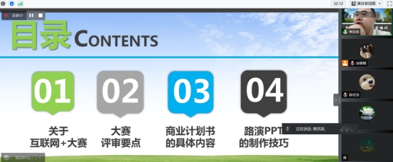 举办了线上“互联网+”创新创业大赛培训讲座,邀请到河北省高校众创空间联盟副秘书长、河北改革战略研究会常务理事、河北工业职业技术大学教师樊洪涛做讲座,学院负责老师、参赛指导教师和参赛学生参加了本次讲座。