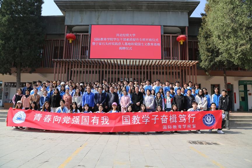 于3月26日在河北省井陉县石头村举行学生干部素质提升专班开班仪式暨石头村实践育人基地和爱国主义教育基地揭牌仪式。
