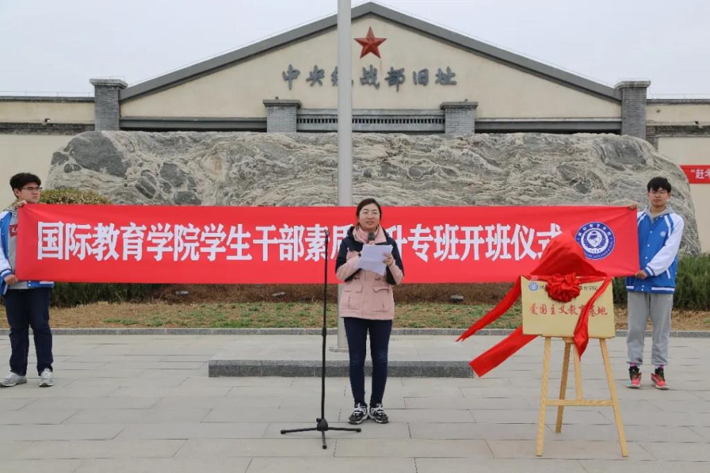 实践育人和爱国主义教育基地揭牌。随后,刘晔院长为本次活动致辞。她向李家庄领导对我院活动的支持表达诚挚谢意,并希望借“统战故里,同心家园”这一优秀的红色文化传承地,激励我院学生厚植爱国主义情怀,深耕爱国主义文化,以“ISEC九大能力”为核心,强化“肯吃苦,敢担当,勇创新”理念,培养韧劲和定力。在思想上强化政治素养,在生活中厚植家国情怀,在实践中练就过硬本领。院学生会主席武顺代表学生干部发言。他表示,学生干部是联系老师和同学的桥梁与纽带,应充分发挥“传、帮、带”的模范带头作用,坚守人生底色,锤炼过硬本领,增强实干能力。接下来,在团委书记李拓的领誓下,全体学生干部庄严肃立,目光坚定,声音响亮,喊出誓言,喊出决心。宣誓结束后,我院教师与学生干部紧随讲解人员的步伐,走进李家庄统一战线展览馆,深入学习爱国主义精神。最后,我院教师与学生干部于广场中心进行了素质拓展活动,学院教师、学生干部与留学生共同参与。活动不分国界,不辨师徒,友谊在呐喊中渐渐升温,团结在互动中慢慢凝聚。