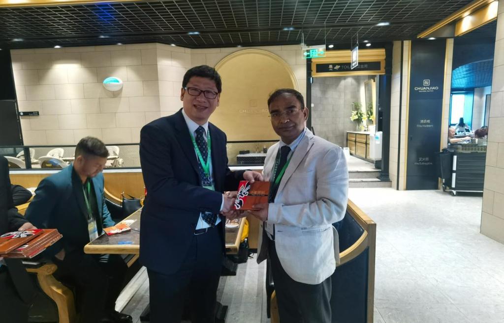 李桂君校长为印度教育工作者代表团团长来可诗教授赠礼