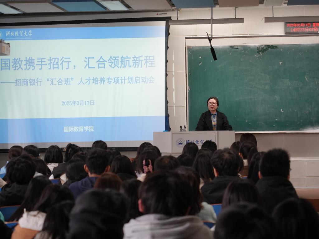 副院长张金哲对招商银行石家庄分行的支持表示感谢,并强调“汇合班”是学院深化产教融合重要举措,也是推动新财经教育综合改革人才培养的生动实践,希望同学们把握机会、积极参与、主动思考,真正实现“学有所用、用有所成”。此次启动会通过介绍招商银行文化、业务模式及金融行业动态,开展金融宣教普及金融知识,人工智能赋能金融行业、人才选拔双通道机制等,使学生们亲身感受金融行业标杆企业,争取在“汇合班”后续的课程学习和培养体系中积累宝贵的实践经验,还通过校企合作平台,未来能够优先获得实习、面试及录用机会,极大地提升了专业竞争力。同时与招商银行高管、资深HR及行业导师的面对面交流,更是帮助他们明晰了个人专业素养和专业规划路径。