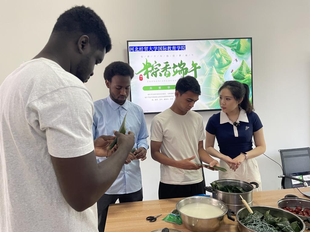 在"观端午·民俗展示"环节,留学生们通过生动的图文展板和实物展示,深入了解了端午节的起源传说、龙舟竞渡、佩香囊等传统习俗;"赏中国·戏剧文化"环节则通过精彩的戏曲表演,让留学生们领略了中国传统艺术的独特魅力;"品传统·中国粽"环节中,师生们一起包粽子、品粽子,在欢声笑语中感受中华美食文化的博大精深;最后的"学中国传统·诗词诵读"环节,留学生们在省诗词协会专家的指导下,学习诵读经典端午诗词,体会中华诗词的韵律之美。