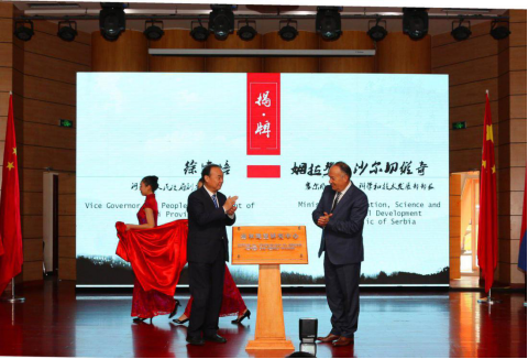 河北省副省长徐建培,塞尔维亚教育、科学和技术发展部部长姆拉登·沙尔切维奇共同为塞尔维亚研究中心揭牌